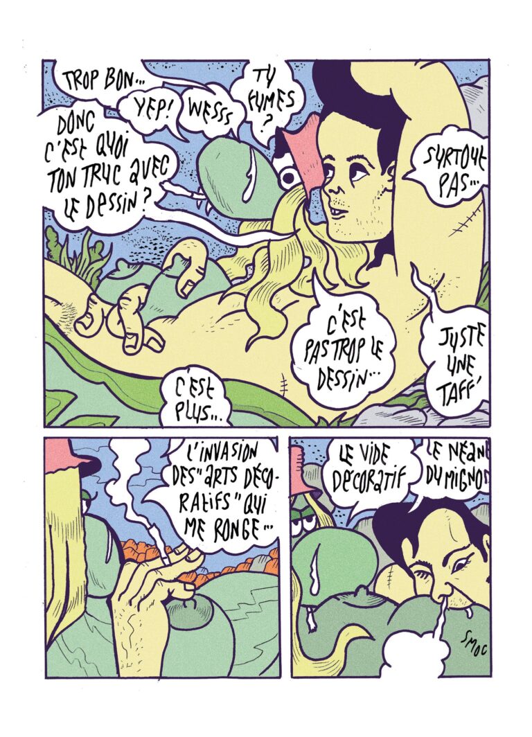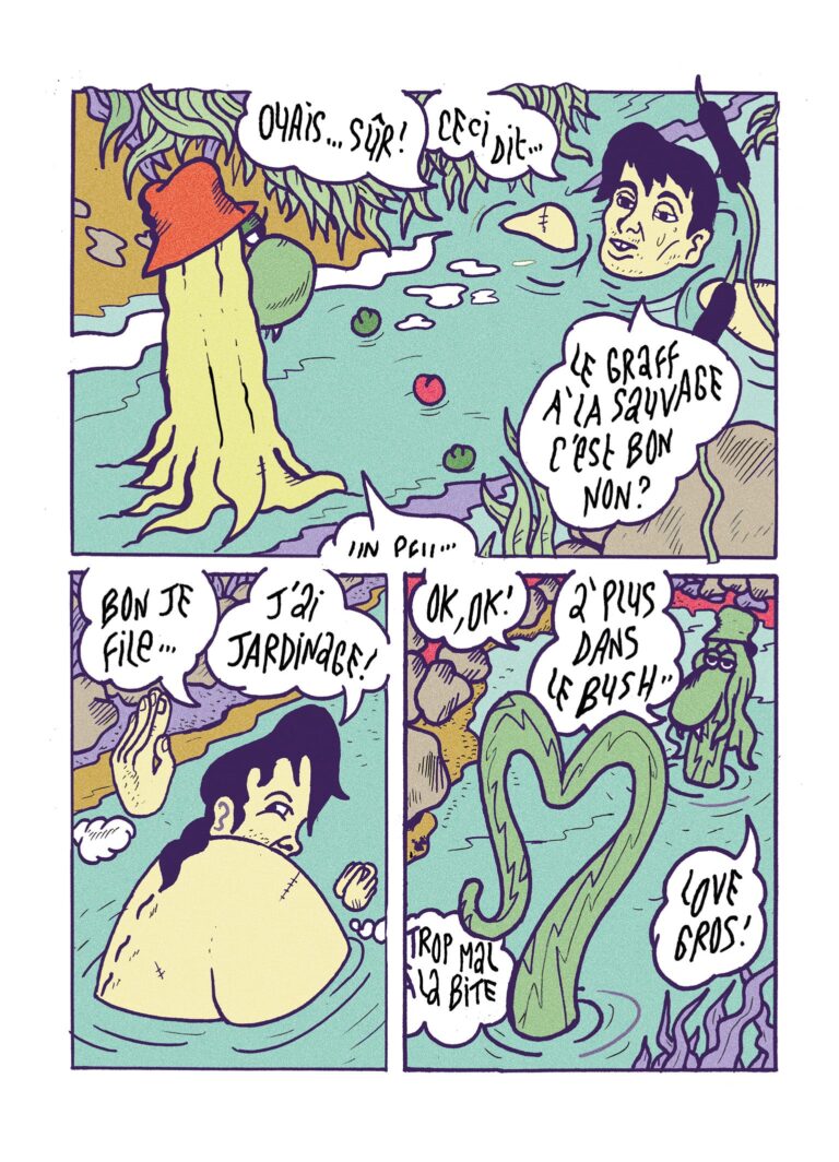 Figure à part du 9e Art, autodidacte indiscipliné, pervers polymorphe de l’édition auto-engendrée, Bertoyas poursuit ici une œuvre hors-norme, poétique et politique, qui refuse les cases et les normes, qu’elles soient de classe, de genre ou de sexualité. Pas de nostalgie ni de provoc gratos, juste une BD de cul férocement idiote et excitante, nourrie de comix déviants, aux littératures digérées de travers, aux slogans qui sentent la cave. Quelque part entre Gary Panter, Charlie Schlingo, les situs et une pile d’illustrés Elvi France ramassés sur le trottoir, LOVE GROS nous rappelle que tout ce qui est sale est forcément révolutionnaire et que, sous les slips crades comme dans les culottes douteuses des prolétaires, ce qui tache, c’est la rage de jouir.